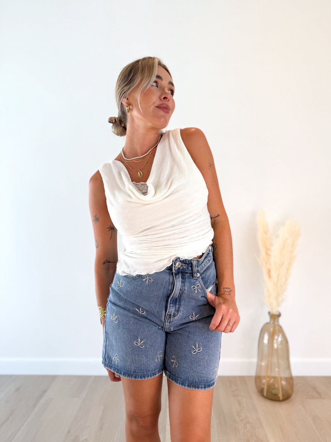 Short denim detalle lazos