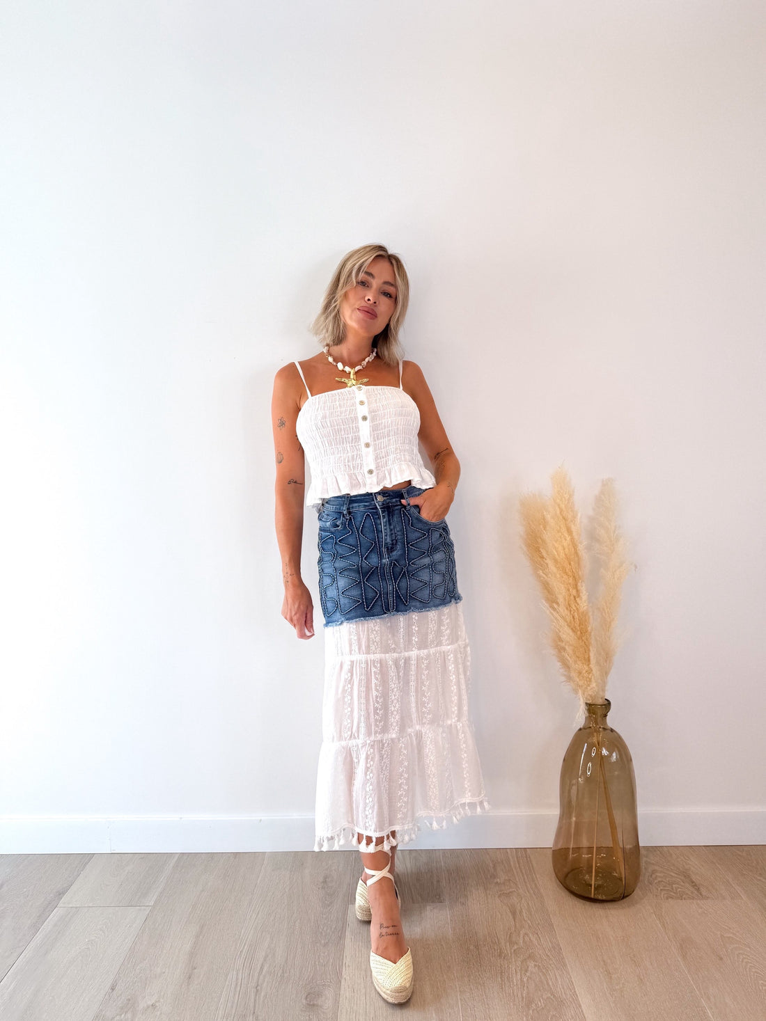 Falda denim combinada