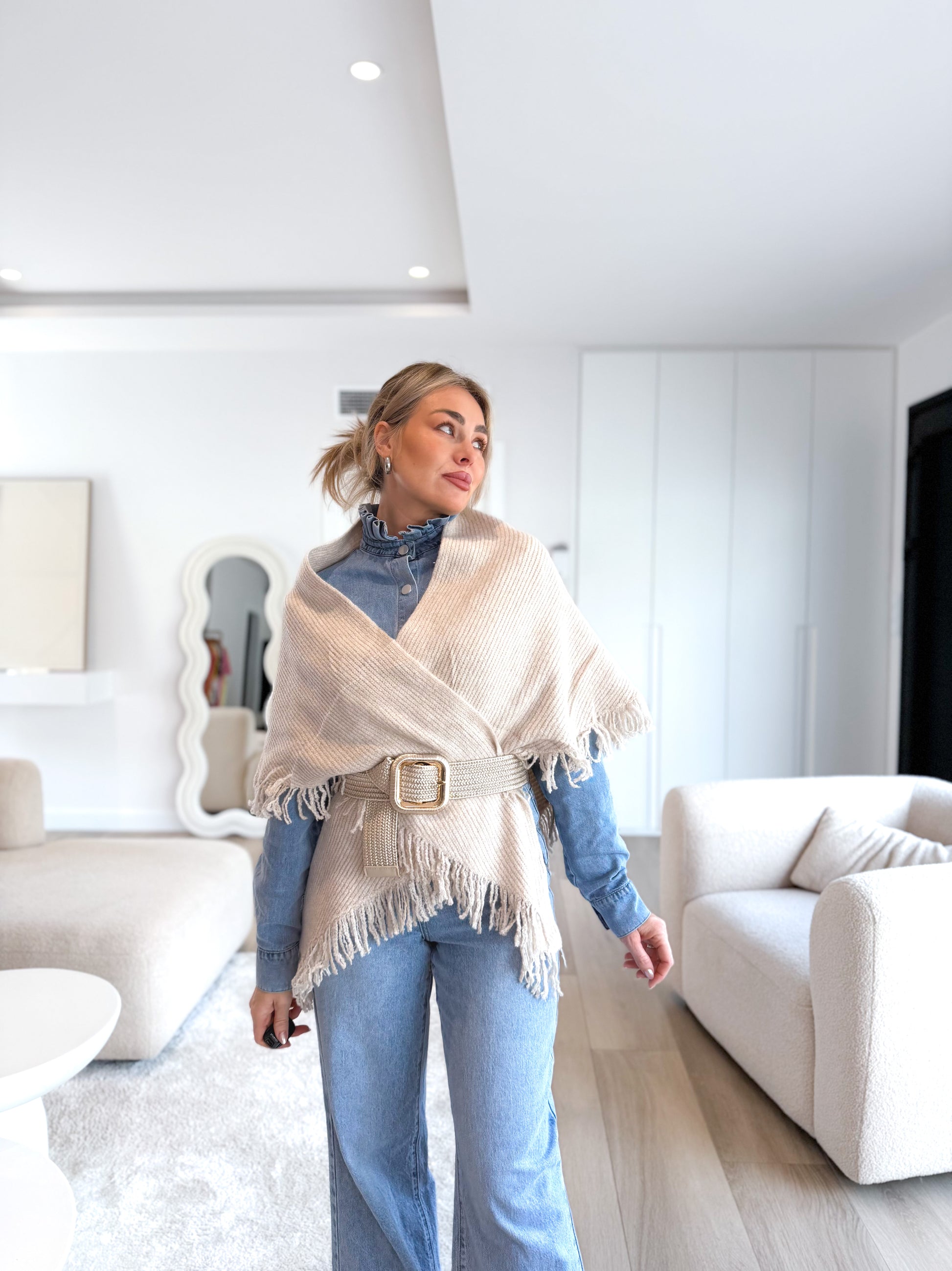Capa flecos beige