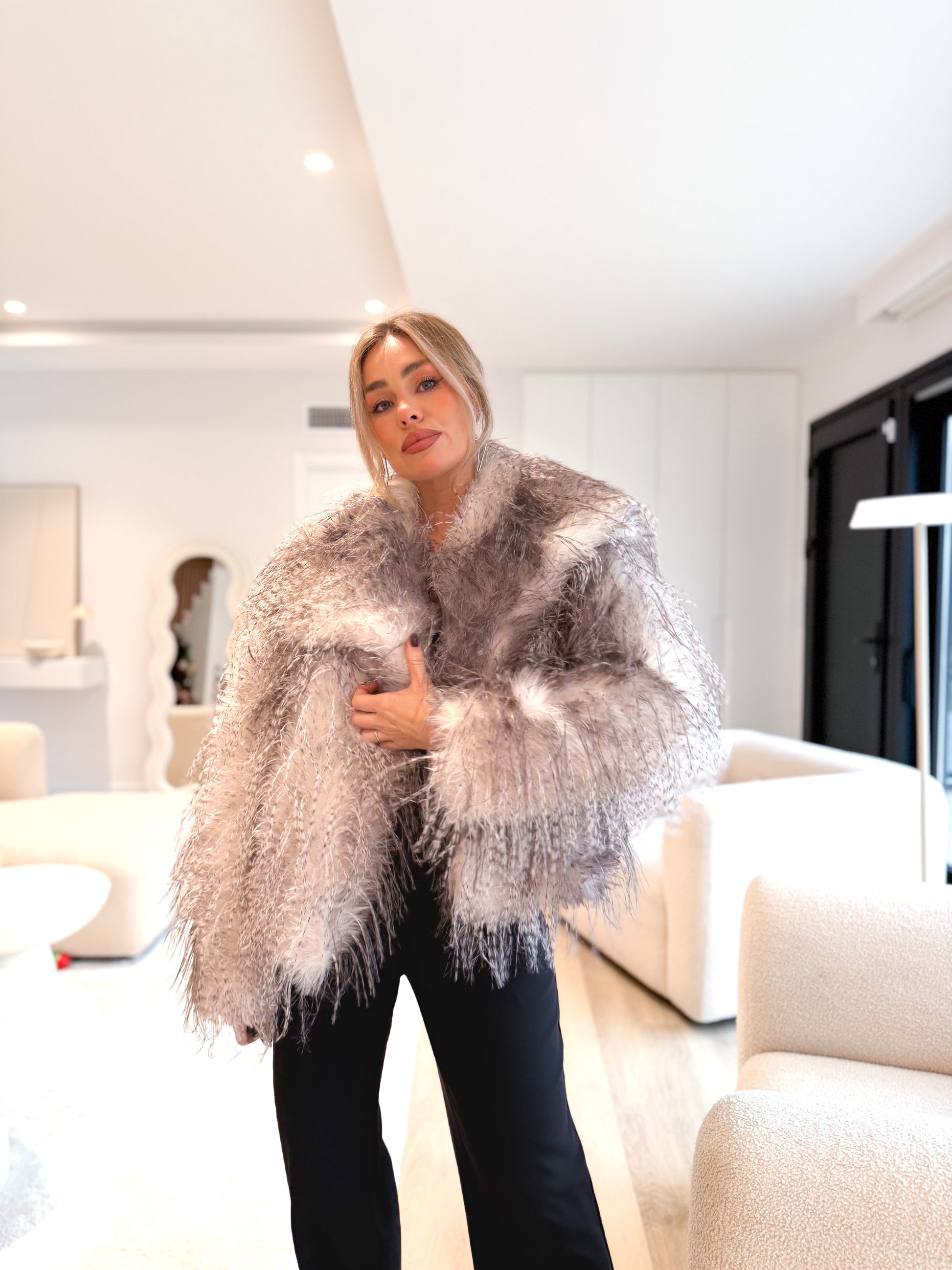 Chaqueta pelo largo bicolor