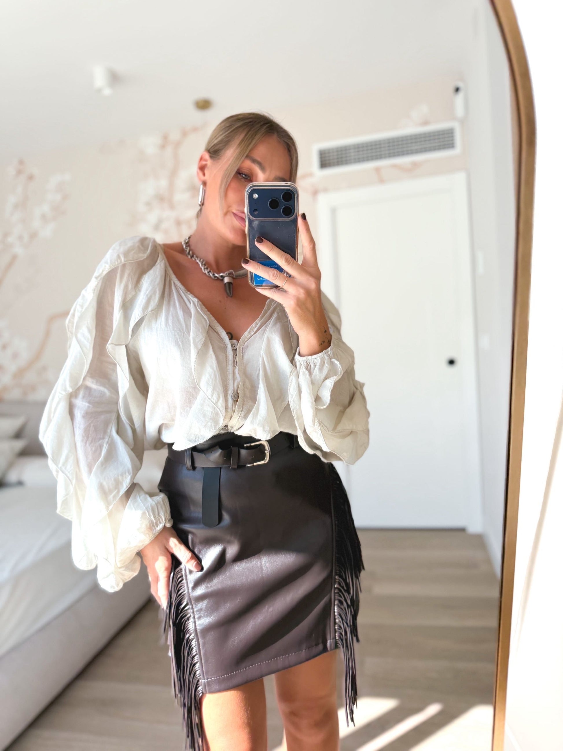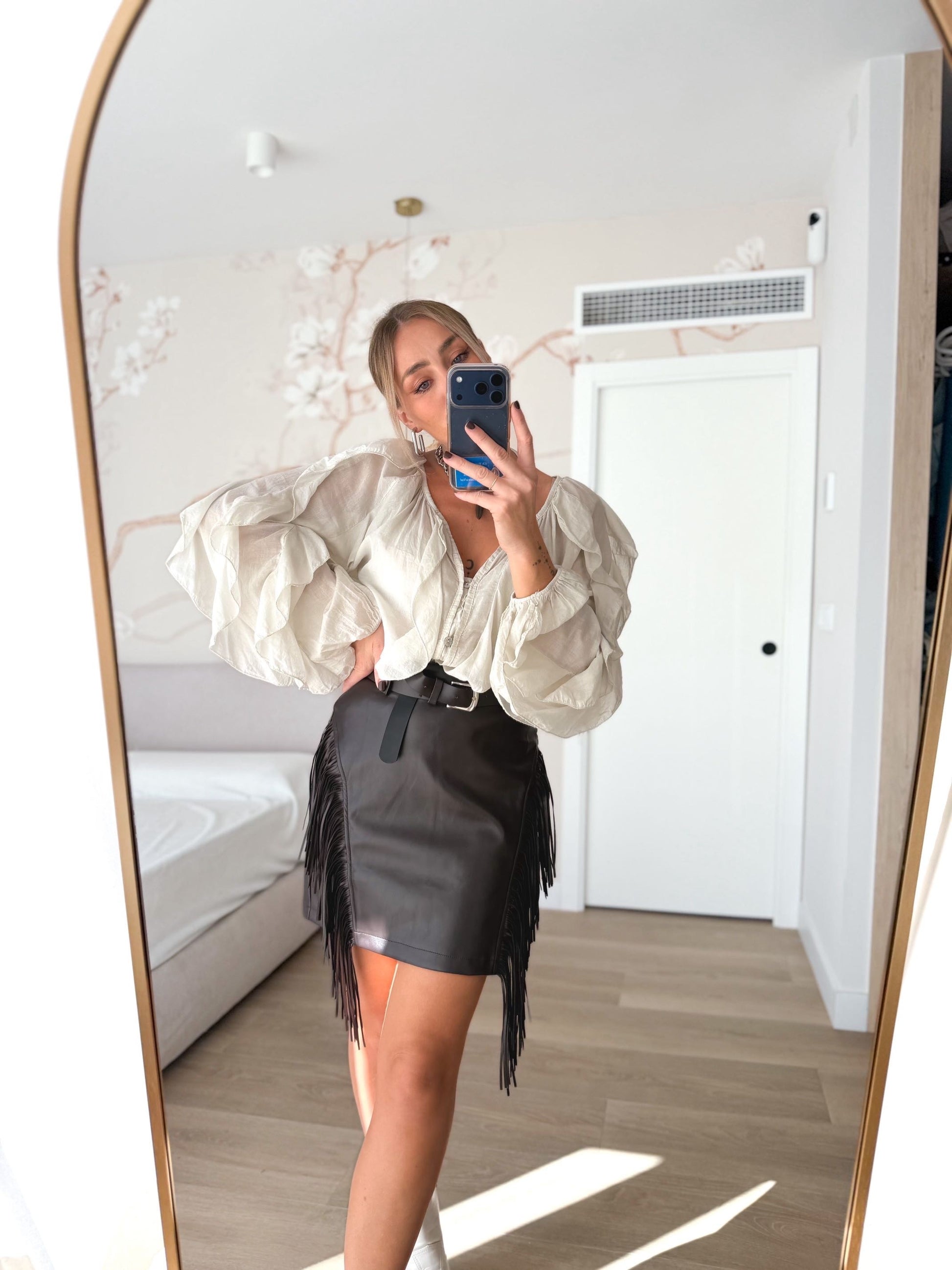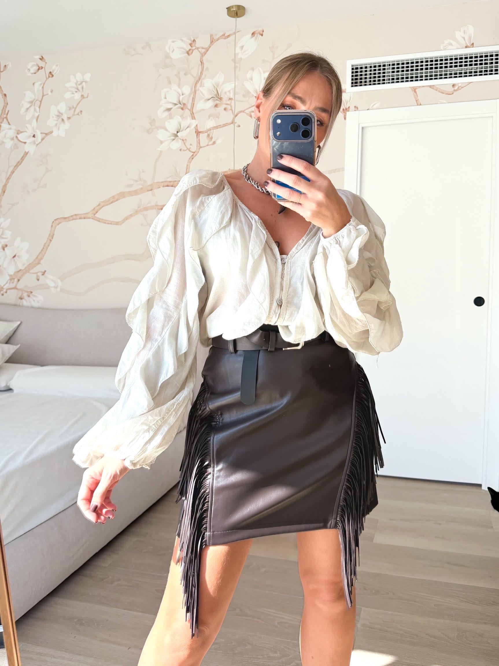 Falda polipiel flecos marrón