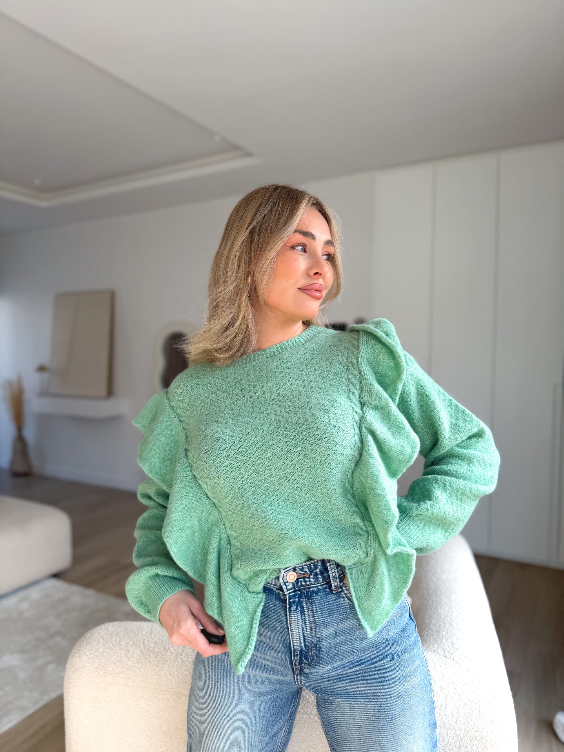 Jersey de punto combinado en multivolantes .