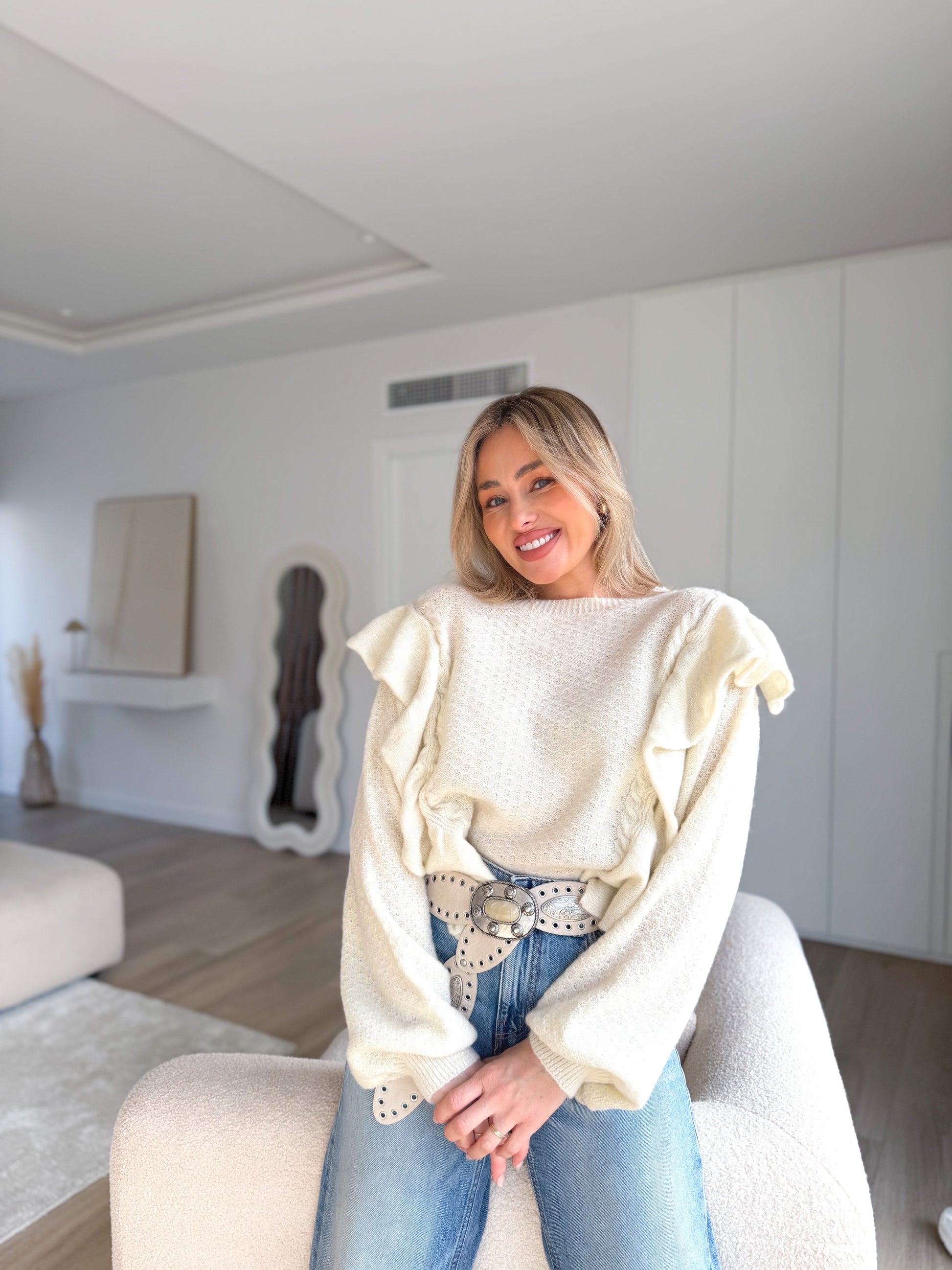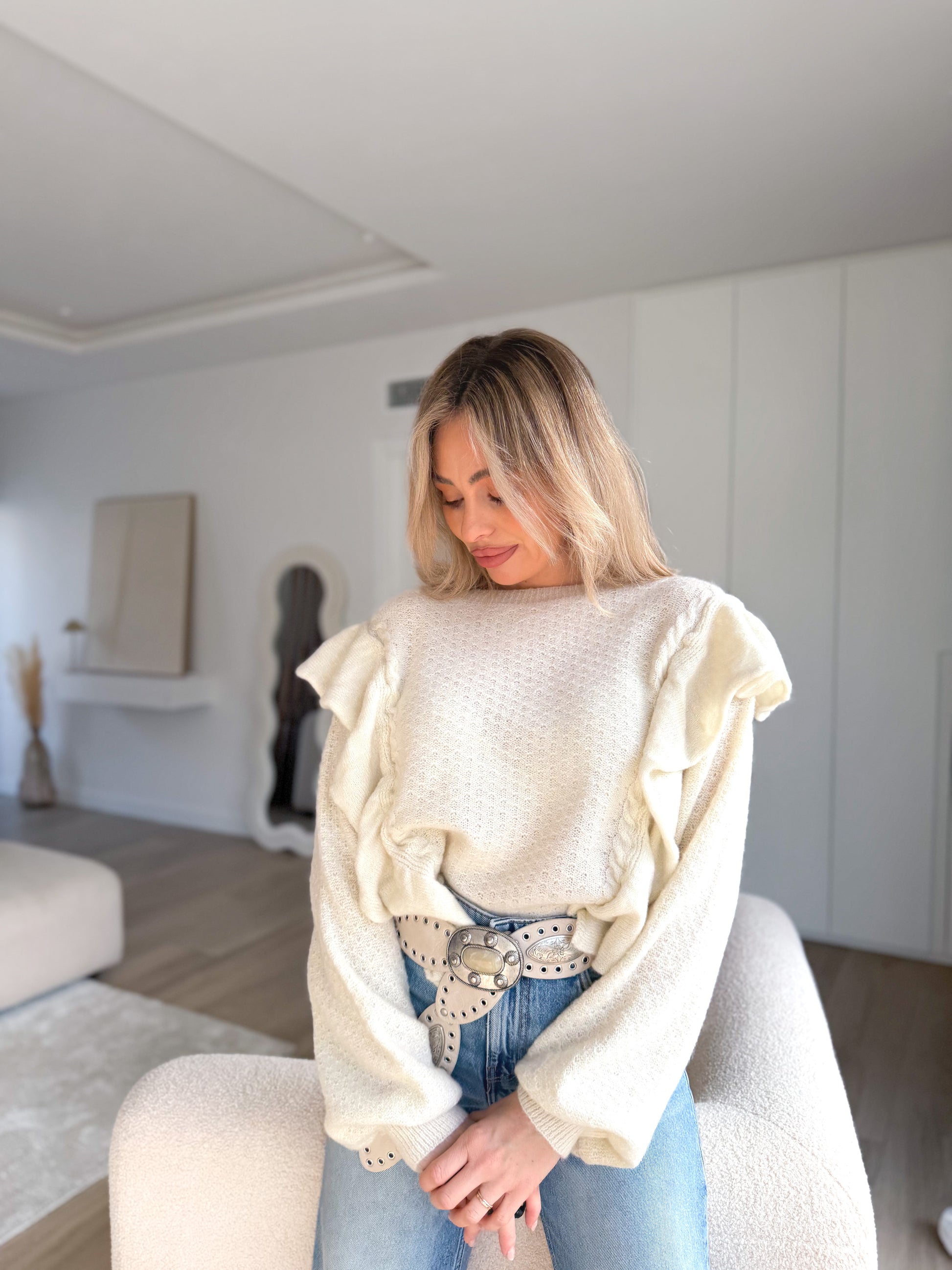 Jersey de punto combinado en multivolantes .