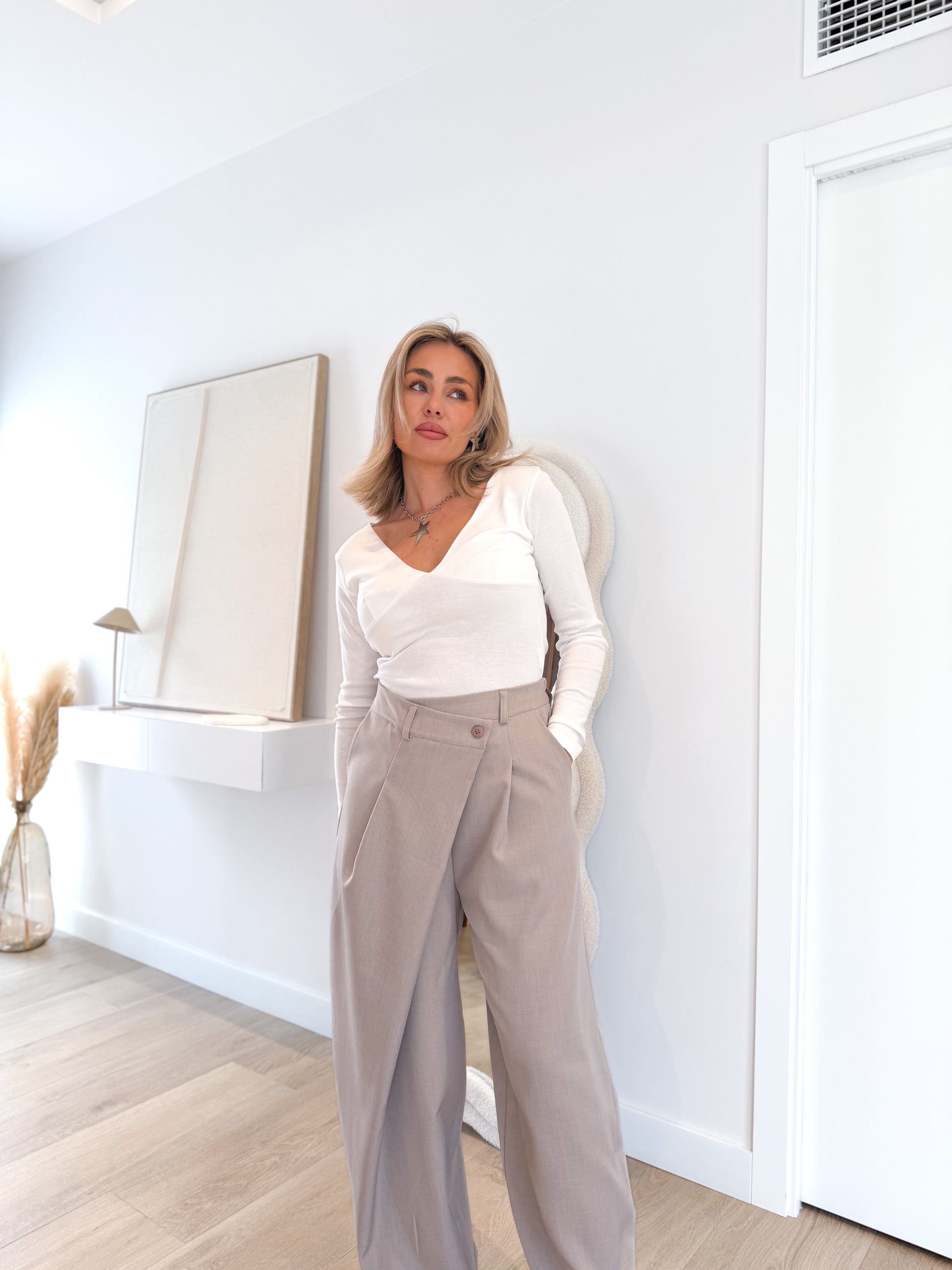 Pantalón pinzas cruzado Taupe